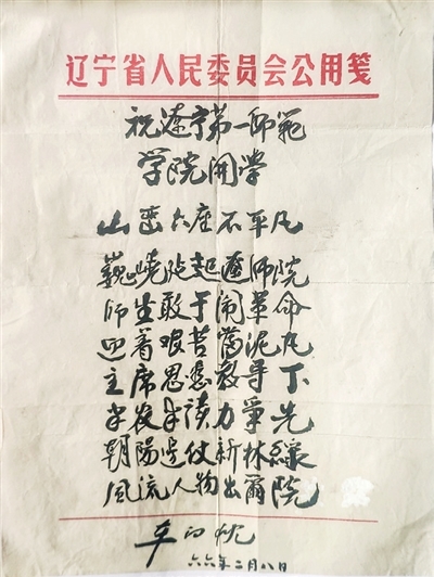 2021年7月6日,有幸见证了于沈阳师范大学校部举行的、沈师老校友张万有教授(96届中文系校友)向母校捐赠由其于故纸堆中发现并收藏的车向忱先生贺我校当年在迁徙之地——辽西朝阳县边杖子公社姑营子大队开学之墨函捐赠仪式。重温先贤夙愿,感慨张万有学长拳拳之心,追昔抚今,感而记之。