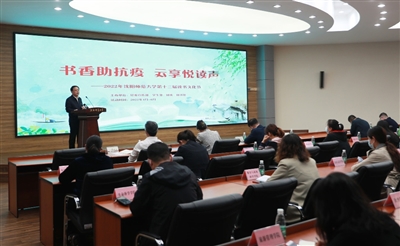 本报讯(通讯员 胡永强)4月23日下午,沈阳师范大学“书香助抗疫·云享悦读声”第十三届读书文化节启动仪式在校部四楼会议室举行,学校党委书记贾玉明出席启动仪式并致开幕辞。学校相关职能部门负责人、各学院师生代表在线下和云端同步参与活动。启动仪式由党委常委、宣传部部长邵永运主持。
