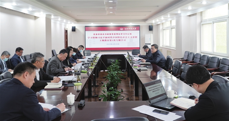 本报讯(记者 冯松) 4月20日,学校党委常委读书班暨党委理论学习中心组在校部303会议室召开学习贯彻习近平新时代中国特色社会主义思想主题教育第1次专题学习,深入学习领会习近平总书记在中共中央政治局第四次集体学习时的重要讲话精神、习近平总书记在学习贯彻习近平新时代中国特色社会主义思想主题教育工作会议上的重要讲话精神,传达学习省委书记郝鹏在全省学习贯彻习近平新时代中国特色社会主义思想主题教育工作会议上的讲话精神,部署学校主题教育开展各项工作。学校党委理论学习中心组成员郝德永、韩国海、刘铸、杨旭、佟玉平、刘天华、卢全、邵永运参加学习,相关职能部门负责人列席会议。党委书记郝德永主持会议并作中心发言。