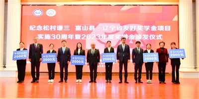 本报讯(通讯员 李晓一) 5月16日下午,“纪念松村谦三ـ富山县·辽宁省友好奖学金项目实施30周年暨2023年度奖学金颁发仪式”在我校国际商学院二楼报告厅举行。副省长靳国卫,省教育厅厅长王庆东,省政府外事办主任、省对外友协会长罗丽,省政府外事办副主任赵洪斌,日本富山县知事新田八朗、富山县议长山本彻、富山县町村会副会长笹岛春人、日本国驻沈阳总领事濵田隆,我校校长杨松、副校长佟玉平等中日双方代表出席颁奖仪式,来自辽宁省6所大学、4所中学的180余名师生参加了仪式。颁奖仪式由省政府副秘书长崔长征主持。