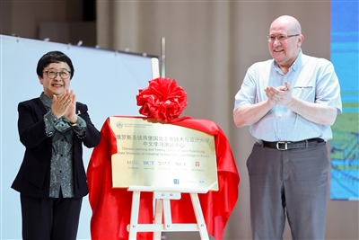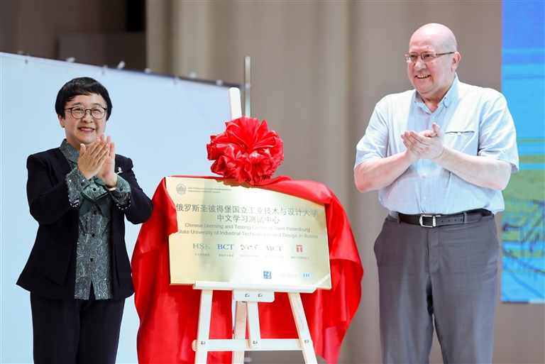 两校共同为俄罗斯圣彼得堡国立工业技术与设计大学中文学习测试中心揭牌,同时与中俄嘉宾共同欣赏了由圣彼得堡国立工业技术与设计大学学生带来的阿卡贝拉合唱《民族女孩》、中国舞《永乐》、俄罗斯民族舞《俄罗斯奇幻》、中国现代诗朗诵《面朝大海,春暖花开》等表演。