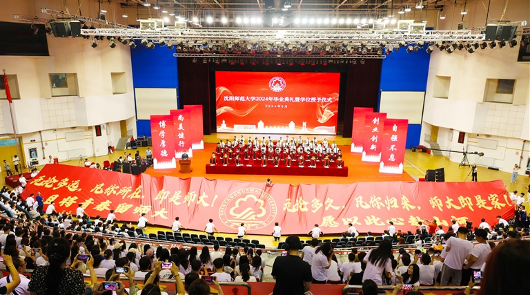 本报讯(记者 张洋 学生记者 姜艺 李佳航) 6月26日,沈阳师范大学2024年毕业典礼暨学位授予仪式在星晔会堂隆重举行。学校党政领导,教授代表,机关各部门负责人,各教学教辅单位党政主要负责人,各学院主管学生工作副书记,研究生导师,辅导员,全体2024届毕业研究生、本科生、留学生及学生家长代表到会,共同见证我校5213名本科生、1109名硕士研究生和9名留学生完成学业。典礼由党政办公室主任唐立宝主持。