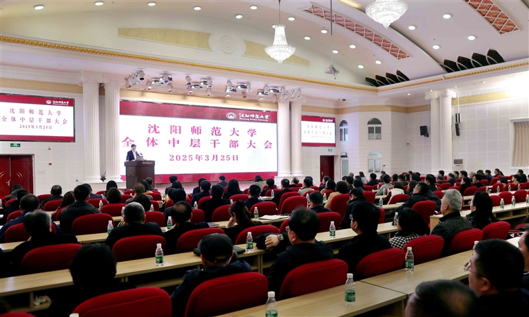 本报讯(记者 梁玉玺) 3月25日,学校召开全体中层干部大会,深入学习贯彻习近平总书记关于全面深化改革的一系列新思想新观点新论断,全面落实中国共产党沈阳师范大学第五次代表大会确定的内涵建设“八大工程”和党的建设“四项举措”。党委书记姜凤春出席会议并讲话,党委副书记、校长杨松,纪委书记、监察专员杨旭,副校长佟玉平、赵礼强、卢全出席会议,全体中层干部参加会议。党委副书记李洪军主持会议。